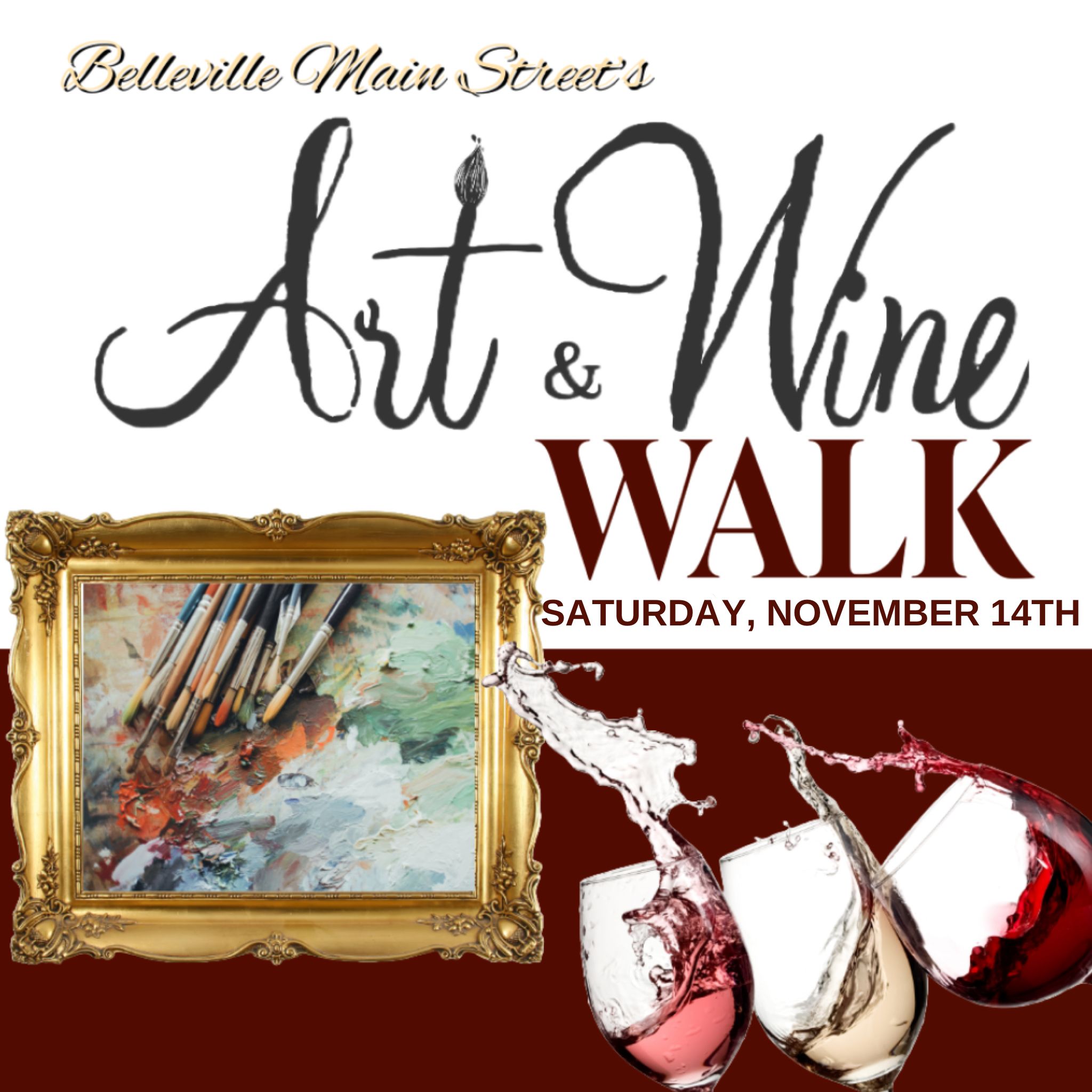 The Art & Wine Walk returns Downtown Belleville Saturday, November 14th. Stroll downtown Belleville Main Street while sampling wines & celebrating unique local artisans and their work at 30 locations.